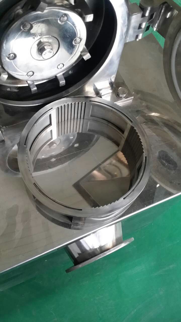 本機(jī)利用活動齒盤和固定齒盤的高速相對運動,使被粉碎物經(jīng)齒沖擊、磨擦及物料彼此間沖擊等綜合作用獲得粉碎。本機(jī)結(jié)構(gòu)簡單、堅固、運轉(zhuǎn)平穩(wěn)、粉碎效果良好,被粉碎物可直接由主機(jī)磨腔中排出,粒度大小通過更換不同孔徑的網(wǎng)篩獲得,另外該機(jī)為全不銹鋼。機(jī)殼內(nèi)壁全部經(jīng)機(jī)加工達(dá)到表面平滑,改變了以前機(jī)型內(nèi)壁粗糙、積粉的現(xiàn)象、使藥品、食品、化工等生產(chǎn)能符各個生產(chǎn)商的需求,達(dá)到了GMP的要求。